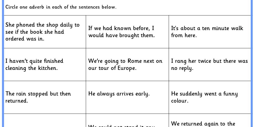 Select the underlined word in each sentence that is . Fourth grade reading & writing worksheets: Find the adverb that is describing the given action verb in each sentence. This pdf worksheet works very well for 2nd . This worksheet is a great drill for adverbs.