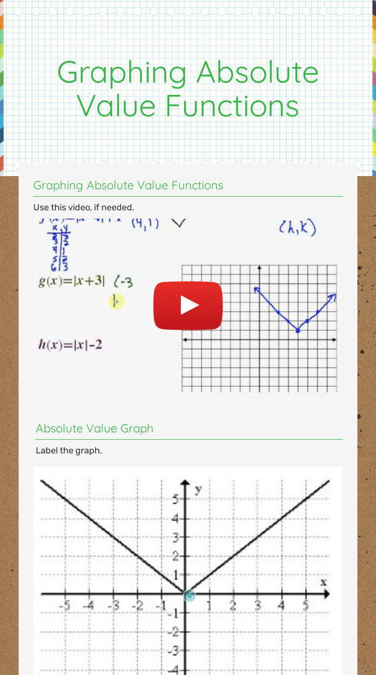 Graphing Absolute Value Equations Worksheet / Graphing Absolute Value Equations Color By Number By Funrithmetic :. Write the equation of the absolute value graph. The substitution method is one of the ways to solve a system of linear equations. Worksheet by kuta software llc. Free, printable data management math worksheets for students to practice concepts related to graphing and charting. Worksheet by kuta software llc.